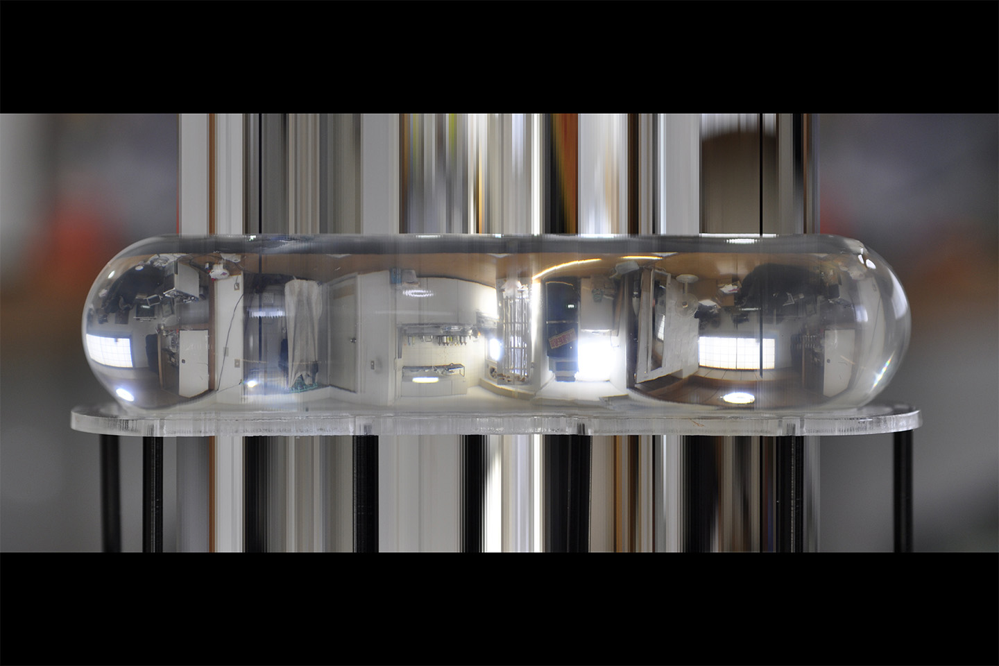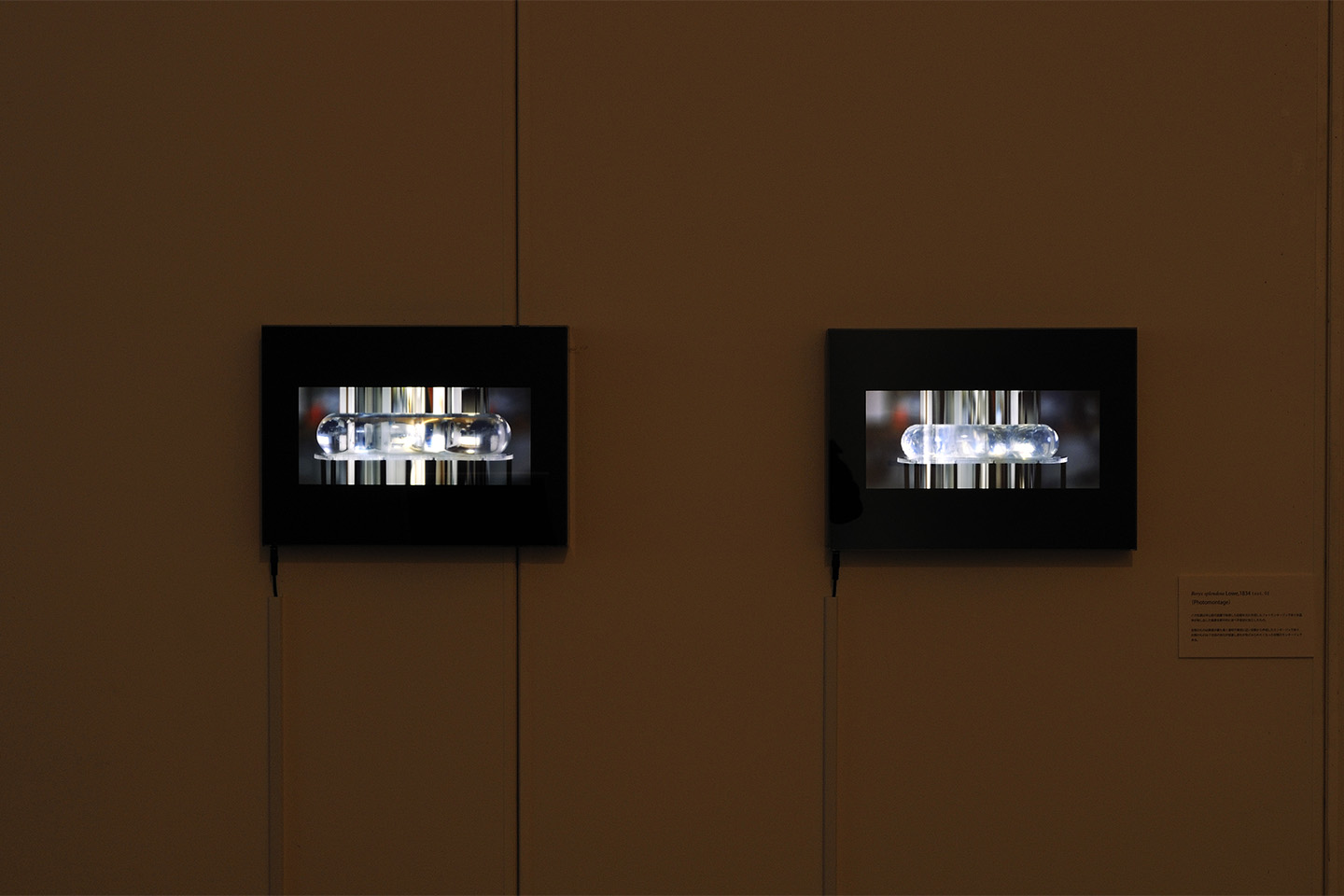 眼球内でレンズのような機能を担っている「水晶体」。生物の死眼球から「水晶体」のみを摘出し、その水晶体に映し出される像の記録を行なった。取り出された水晶体は瞬く間に変容を始め、レンズとしての機能を失う。私は、その水晶体の腐敗していく過程に興味がある。水晶体が腐敗していく様子を記録するためだけに制作した機械。そによって記録された画像は動画として繋ぎ合わし時間的な変化を圧縮する。生物体の死後の現象として、像が映し出される。