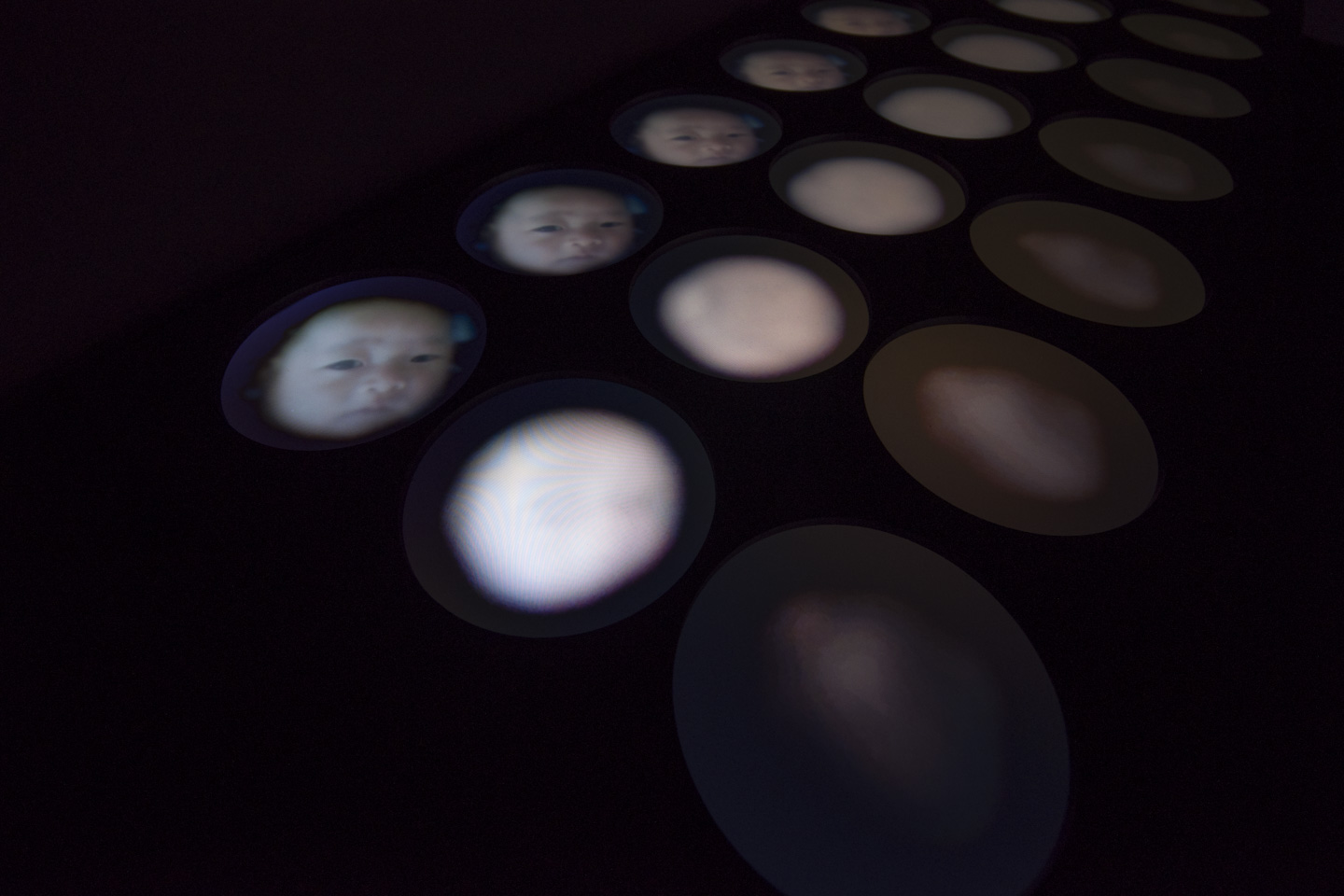 死後の世界から私たちの世界を覗くような、そんな装置をつくりたいと思っていた。生物の死後、肉体は朽ち果てる。眼球も腐り、やがて眼球でなくなる。眼球には水晶体と言う組織が存在するが、これはカメラで言うところのレンズのような役割を担っているものだ。その水晶体を、生命活動を終えた生物の眼球内から取り出し、装置に組み込んでレンズとして光を屈折させ像をうつす。時間と共に水晶体は腐敗しレンズとしての機能を失っていく。その最中に結ばれる光の像を段階的に記録し続けた。肉体のレンズが、肉体でもレンズでも無くなる図像とあなたは対面することとなる。