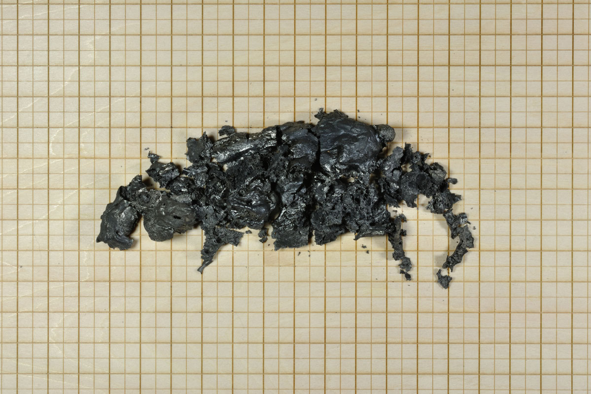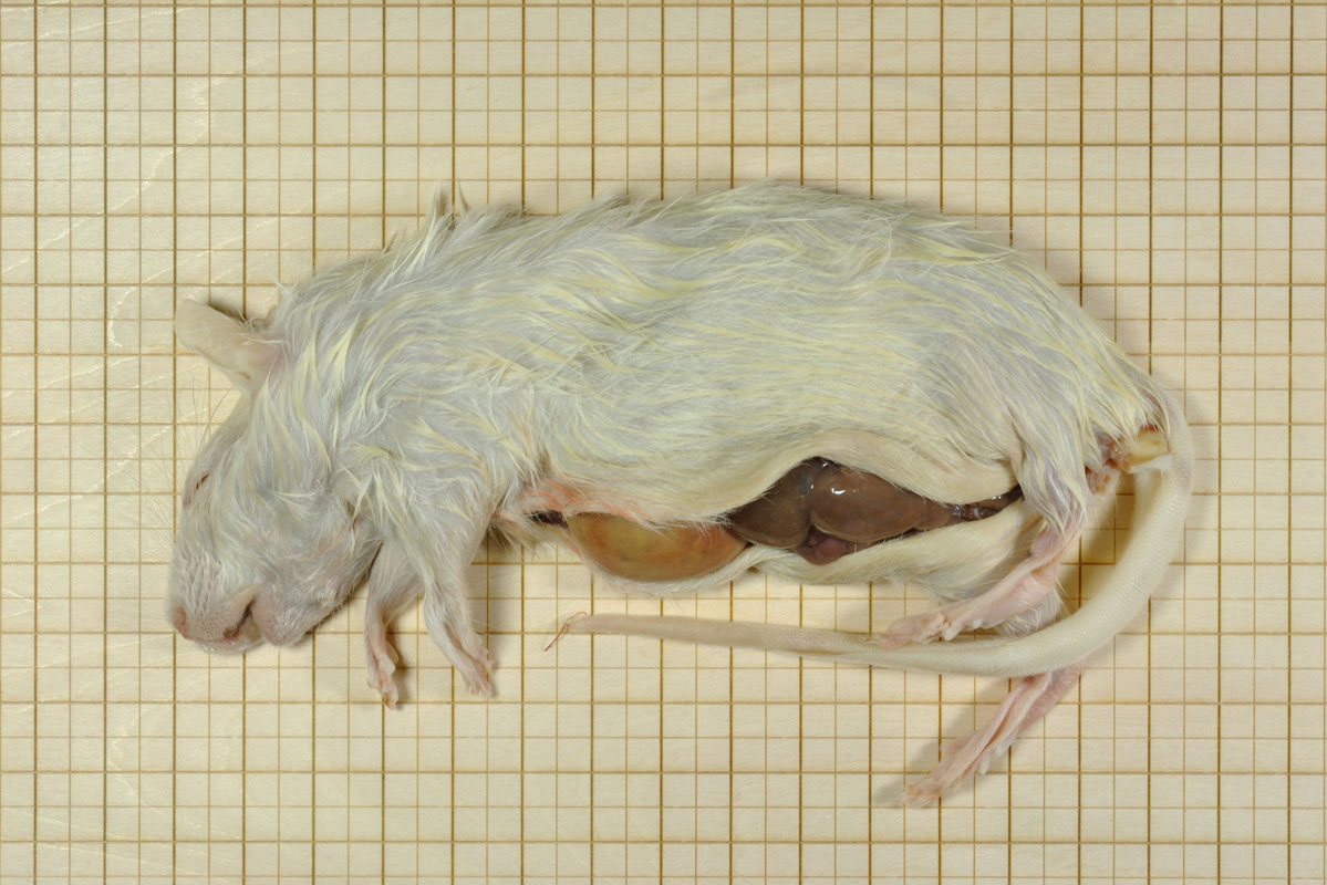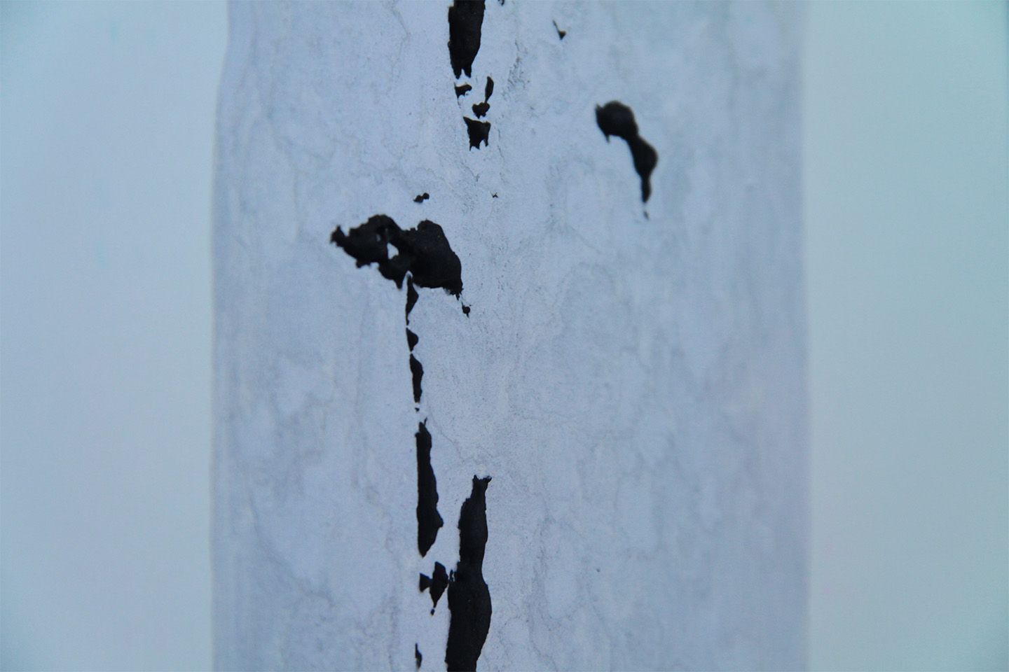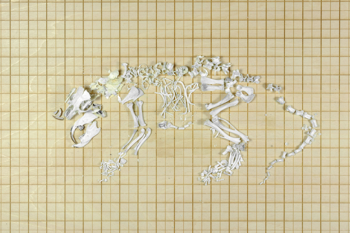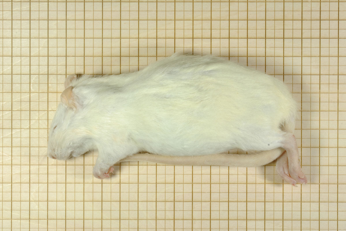 「冷凍マウス」という鼠の死体からそれぞれ白(骨組織)と黒(肉組織)の顔料を制作し、その顔料を用い、もとの冷凍マウスの姿が蘇るかのような描画法によって一枚の絵画を制作した。粉塵と化したマウスの肉体はもはや何の面影も持ち得ないが、そこからイメージとしての冷凍マウスが立ち上がった時、それを"亡霊"と呼ばずになんと形容すればいいのだろうか。 私は、本作を通して過ごした冷凍マウスとの3ヶ月を、忘れることができないし、忘れはしないだろう。